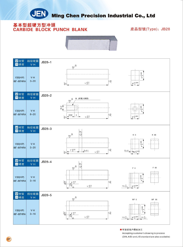 基本型超硬方型冲头