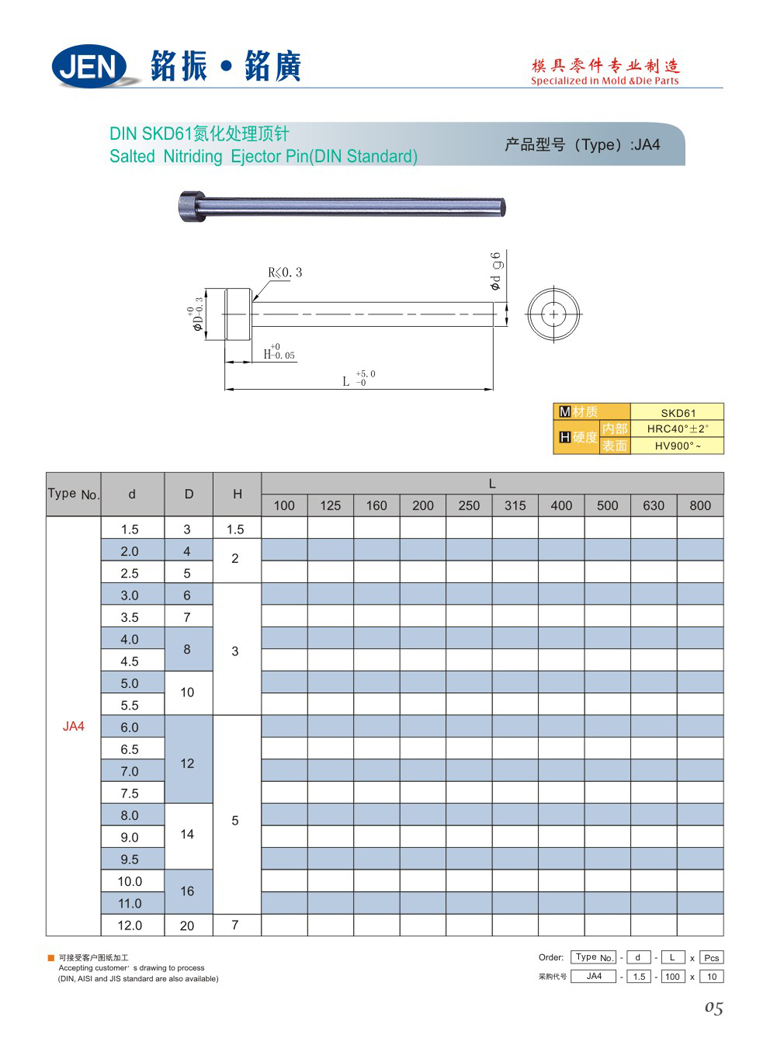 商品名称: DIN SKD61氮化处理顶针