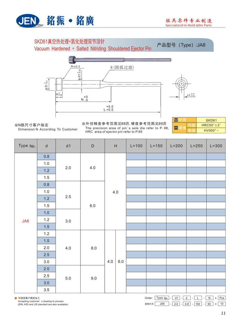 商品名称: SKD61真空热处理 + 氮化处理双节顶针